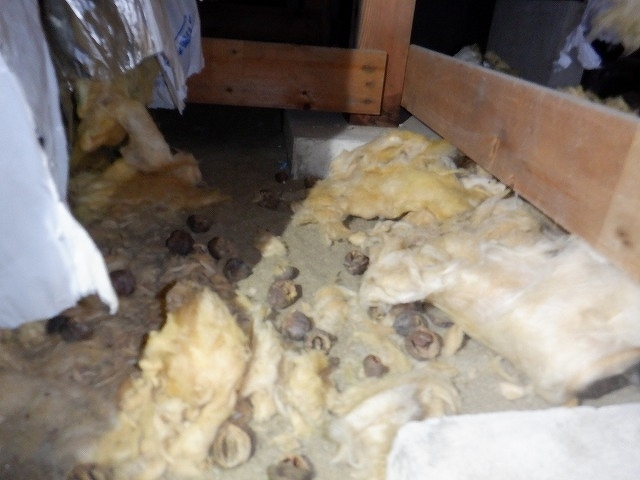 床下の断熱材を食い破り、土壌の上に落としてそこを巣として生活していた様子です( ̄д ̄)