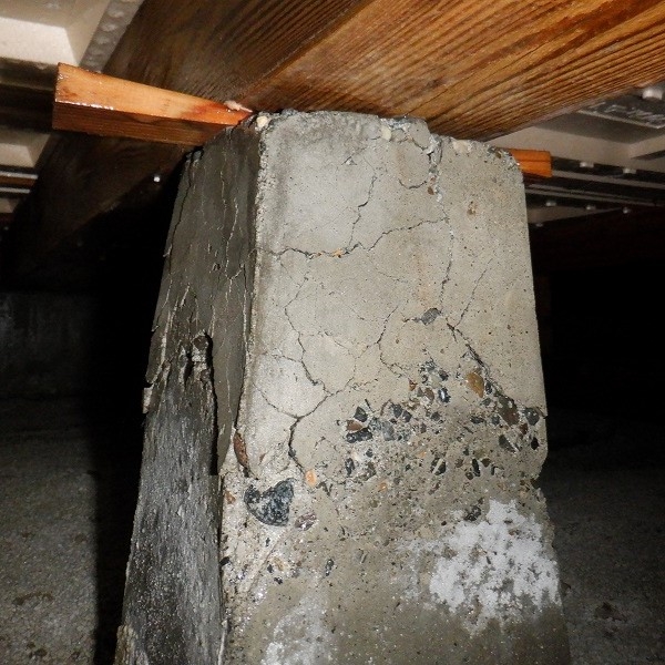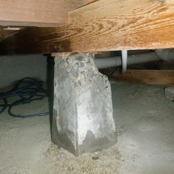 こちらの白アリ駆除に伺ったお宅の床下を拝見すると「ろうそく基礎」が湿気を吸い、もろく崩れ落ちそうになっておりました。