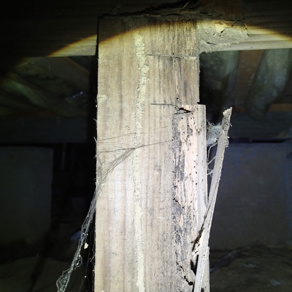 2023年12月29日(金) シロアリの食害形跡あり! 先日、白アリ駆除させていただいたお客様のお宅の床下をみてみると 白アリが玄関から発生し、和室に多数被害が出ていました。 家の木材にも食害された形跡が何箇所も見つかりました。 床下は全体的に湿気が多く、シロアリが最も好む環境となっておりました。。 こういった被害を防ぐためにカネシンでは調査・予防も行っておりますので早めの対策をお勧めします! お気軽にカネシンにご相談ください☆彡 まずは、カネシン(Dr.シロアリ)で無料点検・お見積り依頼を受付けております(^^)!
