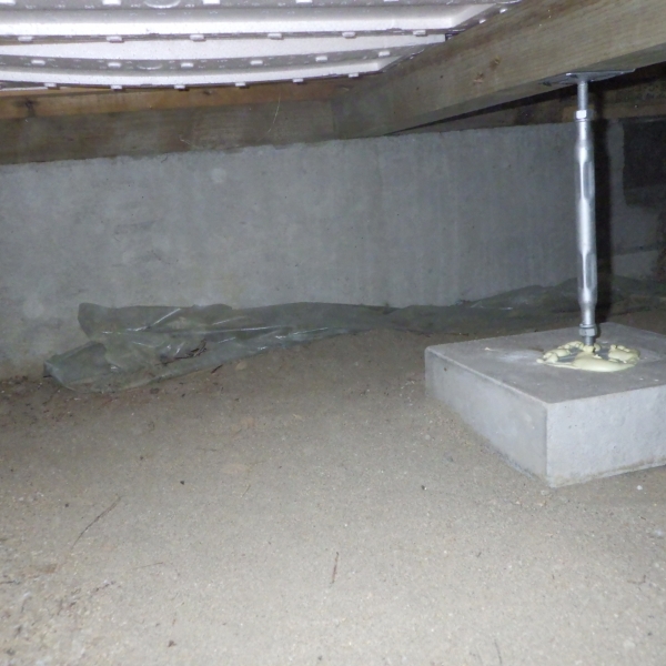 先日、点検に伺わせていただいたお客様のご自宅の床下を見てみると、束柱部分が束を支える石から浮き上がっている箇所が見つかりました。