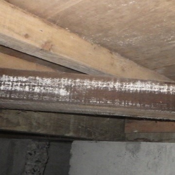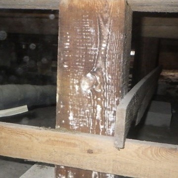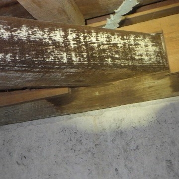 先日、床下点検でお伺いしたお客様のご自宅の床下の木材部分に、白いカビがあちらこちらに繁殖しているのを発見!!