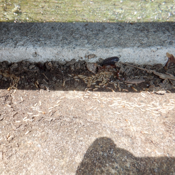 先日点検でお伺いしたお客様の車庫の外壁部分に白蟻の大群を発見しました・・!