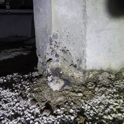 これによりコンクリートを内部から破裂してしまう為、コンクリート表面が剥がれ落ちてしまいます。