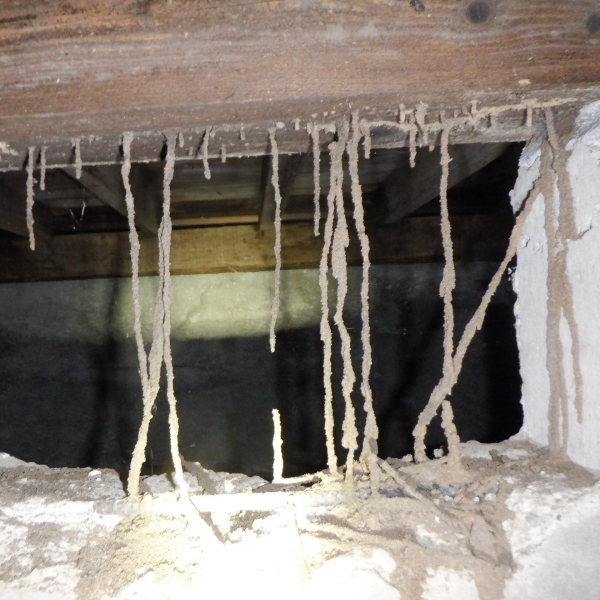 土や木材のカスに自分の排泄物や分泌物を練り合わせて写真のように空中や壁に沿って蟻道(トンネルのような道路)を作ります。