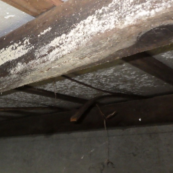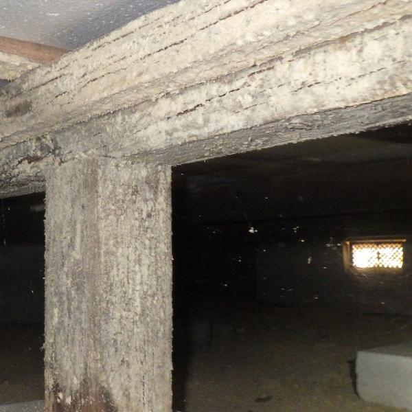 床下木部のあちらこちらが真っ白なカビで覆われておりました・・!