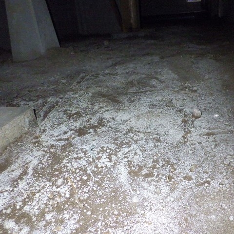 先日点検に伺ったお客様のお家の床下に入ると、湿気が多く溜まっていることが原因で、床下地面の砂がカビだらけになっておりました・・