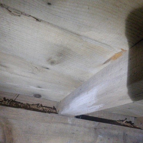 湿気が多く溜まっていることで、床下の木部に白いカビが生えていました・・