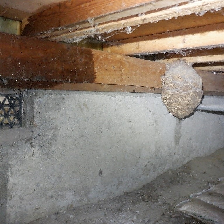 こんな風に床下での点検中に巣と遭遇することがあります。