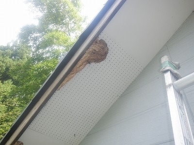 2021年09月22日(水) スズメバチの巣の構造 軒下にベッタリとスズメバチの巣がくっついています。 スズメバチの巣は木の皮の繊維をかじりとって、唾液と混ぜてペースト状にし、塗り固められています。 意外と強固な作りなので、プロでなければ撤去は難しいのです。 スズメバチの巣(もちろん他のハチも)を見つけたら、無理に自分で処理しようとせずに、我々専門家におまかせください!