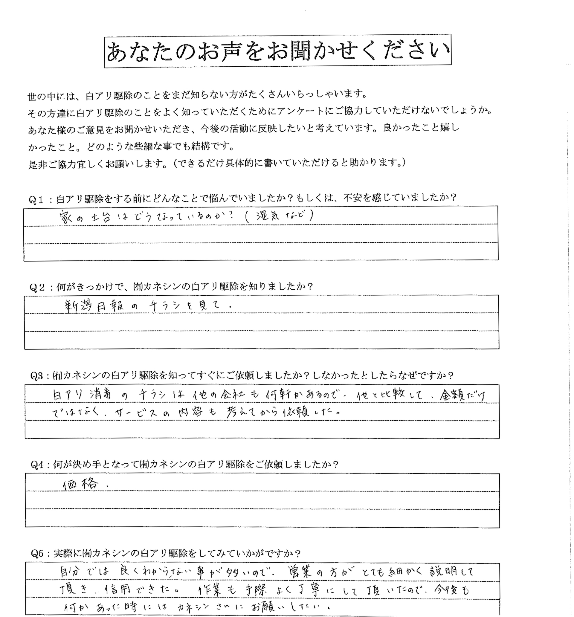 Q.5:実際にカネシンの白アリ駆除をしてみていかがですか?