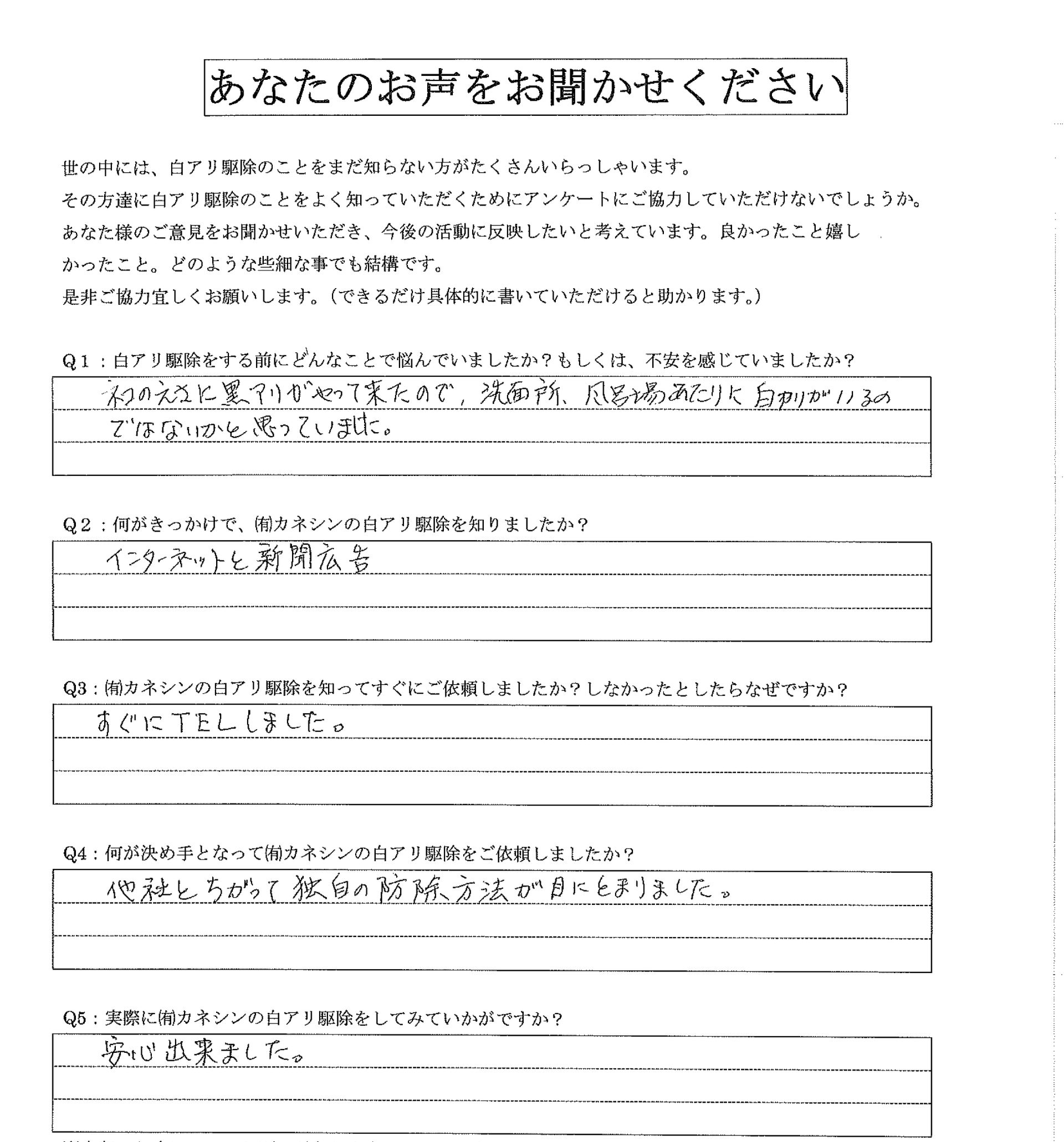 Q.5:実際にカネシンの白アリ駆除をしてみていかがですか?