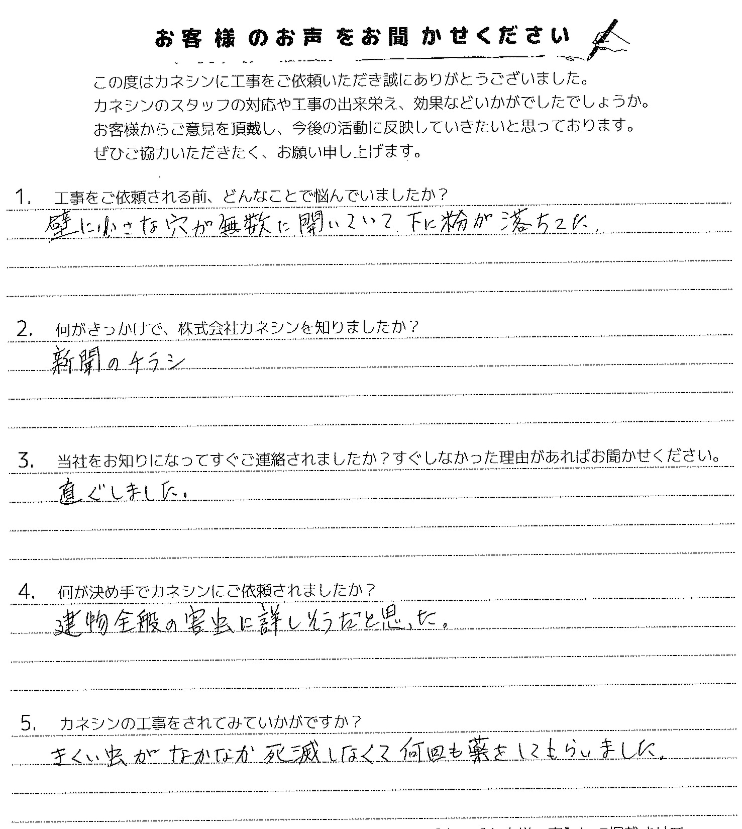キクイ虫がなかなか死滅しなくて何回も薬をしてもらいました。