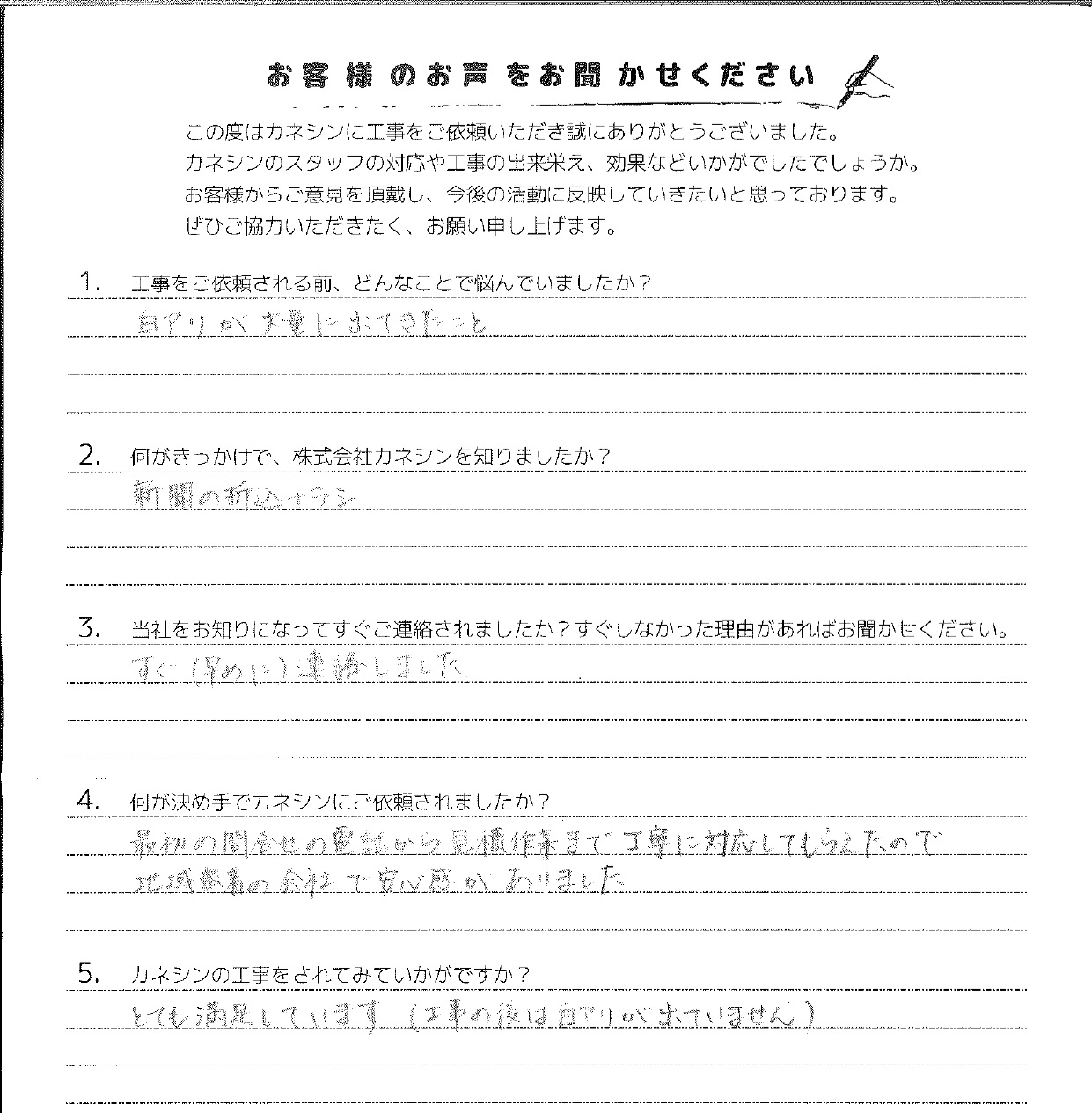 Q.5:カネシンの工事をされてみていかがですか?