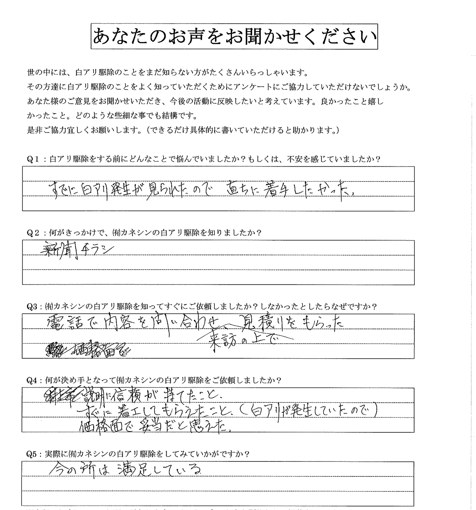 Q.5:実際にカネシンの白アリ駆除をしてみていかがですか?