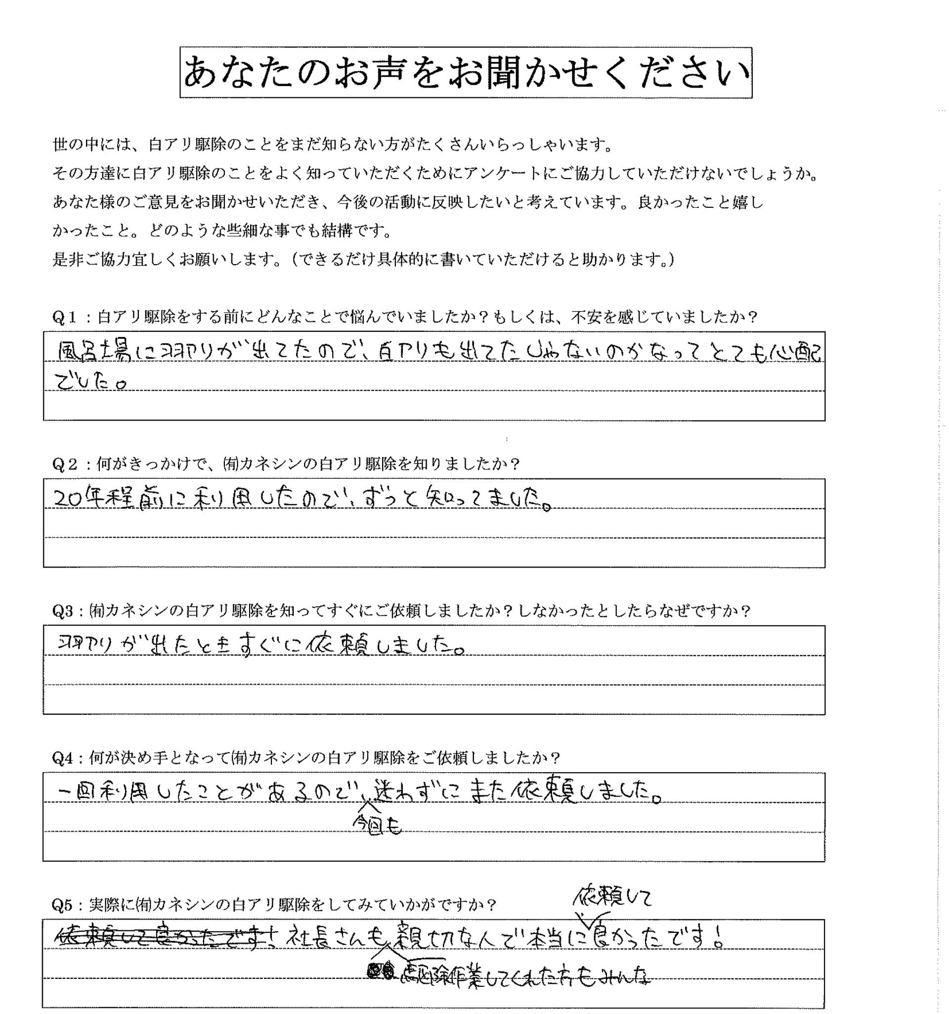 Q.5:実際にカネシンの白アリ駆除をしてみていかがですか?