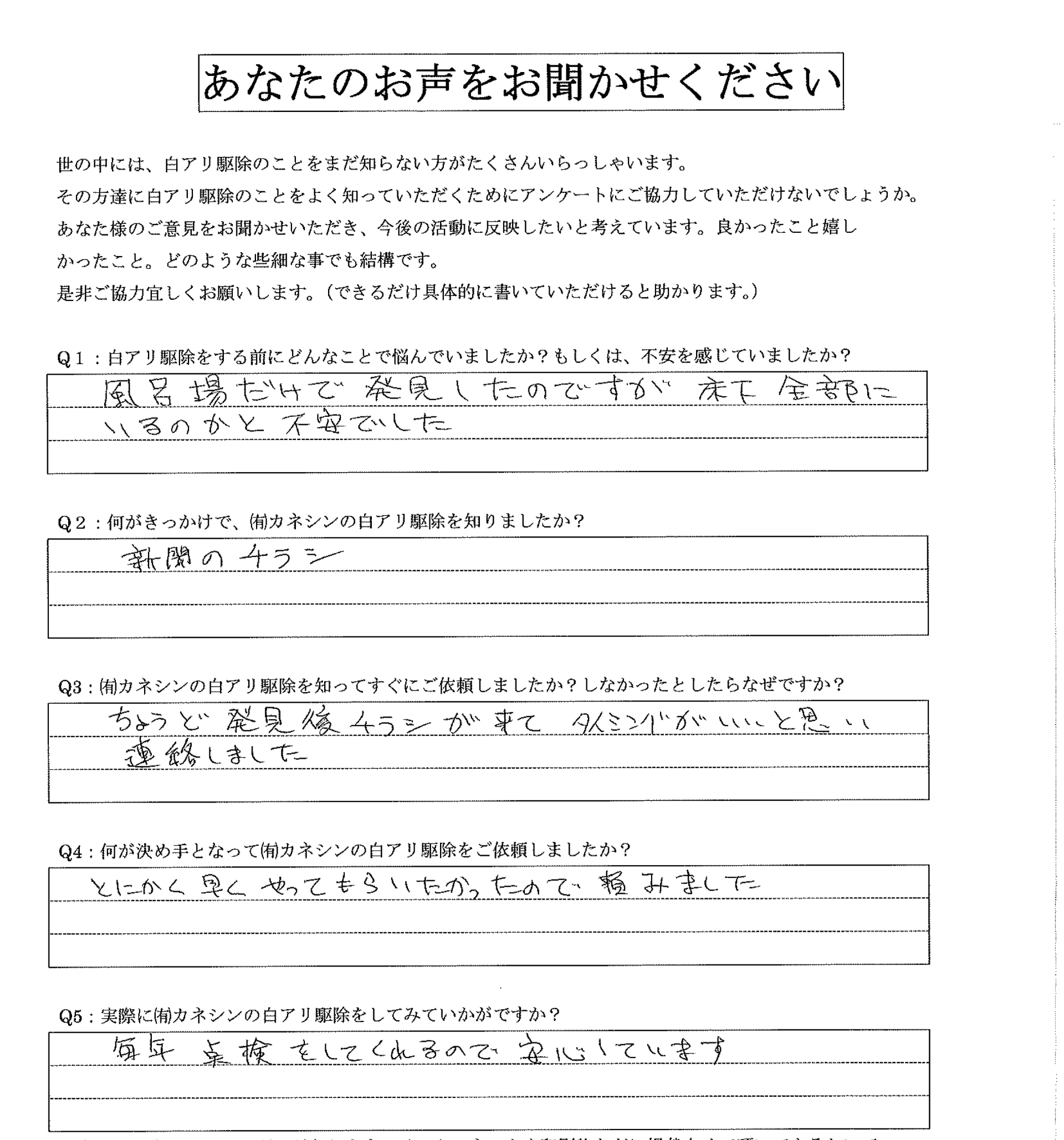 Q.5:実際にカネシンの白アリ駆除をしてみていかがですか?